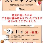 2026年1月18日 / 最終更新日 : 2026年2月5日 シーユース雷音 お知らせ ステーキランチのお知らせ(定員に達したため締め切らせていただきます) 2月11日(水曜日)に、雷音ステーキランチを開催いたします。 全席ご予約制となっております。 ご予約は1月22日(木曜日)から開始いたします。 皆様のご予約のお電話、お待ちしております。