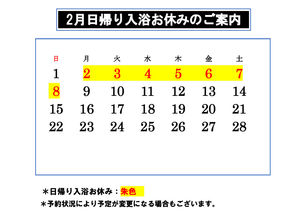 ※7月26日は花火大会の為、日帰り入浴はお休みいたします。