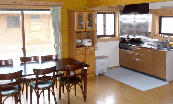 三角屋根で丸太作りのログキャビンは8棟あり、全ての棟に寝具一式(常設5組)、温水シャワートイレ、浴室、キッチン、調理器具及び食器類一式、冷蔵庫、テレビ、冷暖房、専用駐車場が完備されています。